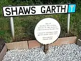 A plaque on the corner of Shaws Garth, marking the site of the station.