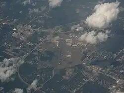 Shreveport Regional Airport covers an area of 1,625 acres (658 ha) at an elevation of 258 feet (79 m) above mean sea level. It has two asphalt paved runways: 14/32 is 8,348 by 200 feet (2,544 x 61 m) and 6/24 is 7,002 by 150 feet (2,134 × 46 m).[1][10] The airport is located off Hollywood Avenue with access to Interstate 20. Shreveport Public Works Commissioner H. Lane Mitchell was a major figure in campaigning to have the airport located on Hollywood Ave.[11]
