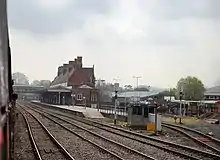 The Barr's Court station was constructed jointly with the Hereford, Ross and Gloucester Railway; for some time the station was in effect two terminal stations, the S&H entering and leaving at the north end only. The HR&GR was a broad gauge line.[9][2]