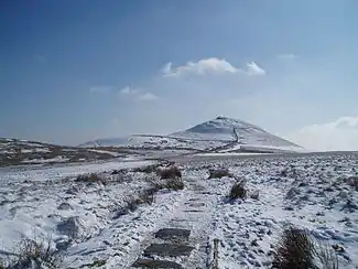 A steep-sided hill with a distinctive profile,[1] sometimes described as the 'Matterhorn of Cheshire', it is the third highest peak in the historic county (Black Hill being the highest and Shining Tor second highest) with an elevation of 506 m (1,660 ft) and commands excellent views over Cheshire. The Peak District Boundary Walk crosses the summit, which is the highest point on the footpath's 200-mile long route.[2]