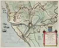 The main objective for 1644 was Gravelines, one end of a line of defences along the border between France and the Spanish Netherlands. The Dutch would simultaneously attack Sas van Gent in the north, while their fleet prevented the Spanish resupplying Gravelines.[7] Faced by this double threat, Francisco de Melo, Governor of the Spanish Netherlands, prioritised retaining the northern Flemish ports of Ghent and Antwerp; Gravelines could not expect to be relieved.[8]