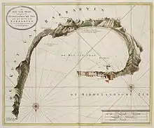 After disembarking reinforcements and supplies at Oran and Mers El Kébir, Francisco de Mendoza's fleet returned to Spain.[14] King Philip II, informed about the development of the siege, decided to reward Martín de Córdoba and Francisco Vivero, commanding officer of Fort San Miguel, for keeping these two crucial strongholds in Spanish hands.[14] In fact, this allowed the capture the following year of Peñón de Vélez de la Gomera, a success which was followed in 1565 by the decisive defense of Malta against the fleet of Turgut Reis.[3] Several years later, in 1574, it was discussed at the Spanish court whether or not to abandon Oran and Mers El Kébir.[15] King Philip II ordered Vespasian Gonzaga Colonna, Prince of Sabbioneta and Duke of Trayecto, to make a comprehensive report about the situation of both towns. Gonzaga advised to abandon Oran but to keep Mers El Kebir.[15] However, marshal Juan Muñoz sent to the king a report by Sancho de Leyva advising to keep both strongholds.[15] Philip II finally opted for Leyva's advice.[15]
