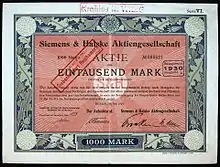 Share of the Siemens & Halske AG, issued May 1920[1]