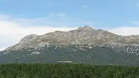 This mountain range includes the Peñón de la Mata, a limestone mountain topped by a massive rocky outcrop that is 1,669 metres (5,476 ft) in height and that towers above Cogollos Vega town. Peñón del Majalijar, the ranges's highest summit is located at the other end of the range.[2] The Sierra de Cogollos is mostly included within the municipal term of Cogollos Vega, with a little part within Huétor Santillán at its eastern end.[3]