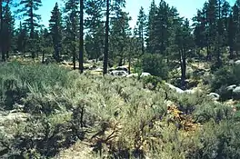 The landscape of the Silver Moccasin Trail varies from lowland chaparral slopes, to oak-lined canyons, to the fir and pine forests of Mt. Baden-Powell, where several Southern California councils of the Boy Scouts of America have placed a monument to their founder, Lord Robert Baden-Powell.[1]