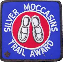 The Silver Moccasin Trail started as a series of Indian trails originally created by the local Native Americans (probably Tongva), but its use was continued by Anglo settlers who either hunted or hiked along its route. In 1942, the Los Angeles Area Council of Boy Scouts established a designated route as the Silver Moccasin Trail, and any Scouts who complete the hike, usually involving several days travel, are qualified to receive the Silver Moccasins Award.[2] Boy Scouts, especially those who are enrolled in "hiking troops," walk this trail usually as part of a five-day backpack trip.