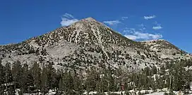 Silver Peak is an 11,878-foot-elevation (3,620 meter) mountain summit located in the Sierra Nevada mountain range in Fresno County, California, United States.[1] It is set in the John Muir Wilderness, on land managed by Sierra National Forest. Silver Peak ranks as the 455th-highest summit in California,[4] and topographic relief is significant as the east aspect rises nearly 2,300 feet (700 meters) above Beetlebug Lake in approximately one mile. It is six miles (9.7 km) north of Lake Thomas A Edison, and approximately 12 miles (19 km) south of the community of Mammoth Lakes. The peak is situated on Silver Divide, two miles northwest of Graveyard Peak. The first ascent of the summit was made prior to 1937 by an unknown party.[5] Inclusion on the Sierra Peaks Section peakbagging list generates climbing interest.