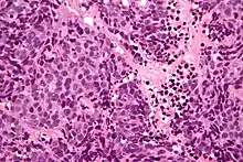 Micrograph of a sinonasal undifferentiated carcinoma. H&E stain.