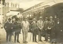 ![]() Sir Albert Bowen (in white suit) at the railway terminus in Lima, Peru, 1923 | |