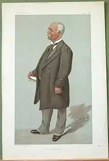 Evans was made a Knight Commander of the Order of St Michael and St George (KCMG) in 1893.[12][13] Later that year he was appointed to the Commission of Lieutenancy of the City of London.[14] In 1894 he was appointed to a Board of Trade committee to look into the undermanning of British ships and the proper penalties for those sending such ships to sea.[15] He later sat on another Board of Trade enquiry into the International Regulations for Preventing Collisions at Sea.[16] In 1896, Evans was made a vice-president of the City of London Liberal Association. Among the other men similarly appointed at the same time was future party leader H H Asquith.[17] It was announced that he would receive a baronetcy in the 1902 Coronation Honours list published on 26 June 1902 for the (subsequently postponed) coronation of King Edward VII,[18] and on 24 July 1902 he was created a Baronet, of Tubbendens, in the parish of Farnborough, in the county of Kent.[19][20]