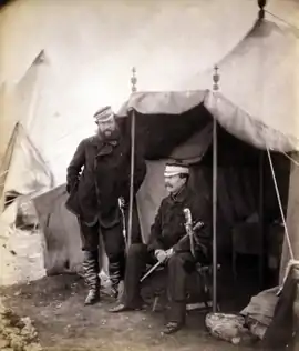 Sir John Campbell and his aide-de-camp Captain Hume, (standing) by Roger Fenton, 1855[1]