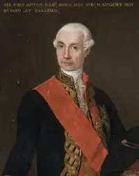 Sir John Francis Edward Acton, 6th Baronet (3 June 1736 – 12 August 1811)[2] was a French-born English gentleman who served as Commander of the naval forces of the Grand Duchy of Tuscany and later as Prime Minister of the Kingdom of Naples under Ferdinand IV.[3] He served at Naples during the turbulent times when French Revolutionary fervour under Napoleon was sweeping across Europe and threatening to extinguish the monarchy he served.