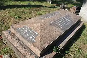 He is buried with his wife, Maria Clementina (né Kirkpatrick), and son, Thomas Louis, in Kensal Green Cemetery in London.