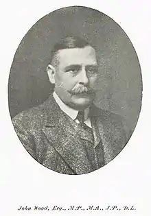 Sir John Wood, 1st Baronet DL (8 September 1857 – 28 January 1951)[1] was a British Conservative Party politician who served as the Member of Parliament (MP) for Stalybridge from 1910 to 1918 and then for Stalybridge and Hyde from 19181922. He was created a baronet, of Hengrave, Suffolk, on 14 February 1918.