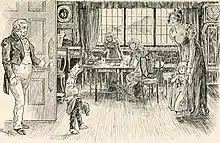 Sir Robert and Lady Williams at Fryars. A visiting child Henry Keppel entertains them with a handstand.