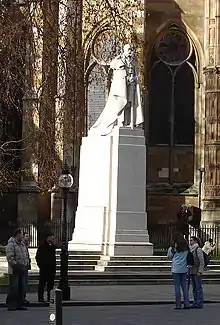 Statue of George V | Old Palace Yard, London | 1947 | Statue on pedestal | Portland stone | 3m tall | Grade II | Q7604483 | Architect, Giles Gilbert Scott.[30][53][26] |