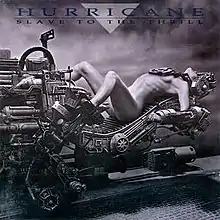 Slave to the Thrill is the third studio album released by the American heavy metal band Hurricane. The original album cover art was photographed by John Scarpati.[2] It featured a nude female model lying on a machine. This cover was replaced shortly after the initial pressing by an alternative cover that had the female model removed from the picture so that all that was seen is the machine.
