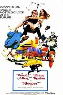 Sleeper is a 1973 American science fiction comedy film directed by and starring Woody Allen, who co-wrote it with Marshall Brickman. Parodying a dystopic future of the United States in 2173, the film involves the misadventures of the owner of a health food store who is cryogenically frozen in 1973 and defrosted 200 years later in an ineptly led police state. Contemporary politics and pop culture are satirized throughout the film,[2] which includes tributes to the classic comedy of Buster Keaton, Harold Lloyd, and Charlie Chaplin.[2] Many elements of notable works of science fiction are also paid tribute to, or parodied.