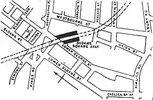 From 1 August 1872, the "Middle Circle" service also began operations through Sloane Square running from Moorgate along the MR's tracks on the north side of the Inner Circle to Paddington then over the Hammersmith & City Railway (H&CR) track to Latimer Road then, via a now demolished link, to the West London line to Addison Road and the DR to Mansion House. The service was operated by the Great Western Railway.[11]