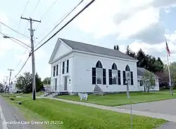 Smithville Valley Grange No. 1397, also known as First Universalist Society Church and Smithville Community Center, is a historic grange hall at Smithville Flats in Chenango County, New York. It was built in 1842 as a church and converted for use as a grange hall in 1921. The building is in the Greek Revival style.[2]