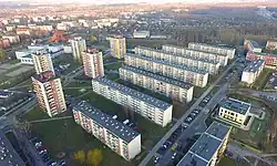 During World War II, in 1940, the Germans arrested local Polish parish priest Antoni Korczok, deported him to the Dachau concentration camp, and murdered him there the following year.[6] His successor Jerzy Jonienc was arrested in July 1941, but was released in September 1941.[6] The Germans established and operated the E22 and E452 forced labour subcamps of the Stalag VIII-B/344 prisoner-of-war camp for Allied POWs in the district.[7] After the war, Sośnica became again part of Poland.