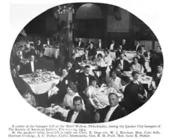 On February 14, 1914, in the flush of enthusiasm following the Denver conference, the Executive Committee held its meeting in Philadelphia, Pennsylvania, in a more elaborate fashion than the usual session and included a banquet.[71] In October 1914, Dennison Wheelock hosted the Society's annual October convention in Madison, Wisconsin.[72] In December 1914, the Society met in Washington, D.C. and received a first-class reception from the federal government. Commissioner Cato Sells welcomed them to the nation's capital where they toured the Bureau of Indian Affairs, and visited the White House to meet with President Woodrow Wilson. After shaking hands with the president, Wheelock presented the Society's petition in support of the Carter Bill and Stephens Bill.[73] Wheelock spoke, "We believe that you feel, with the progressive members of your race, that it is anomalous permanently to conserve within the nation groups of people whose civic condition by legislation is different from the normal standard of American life." While President Wilson was impressed, both bills garnered little political traction in Washington. Arthur C. Parker noted the political aversion to Indian rights legislation when he observed that "one senator wrote me that there was a great deal of prejudice in considering Indian matters and reluctance to take them up."[74]