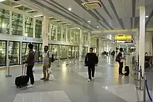 The Soekarno–Hatta Airport Skytrain (Indonesian: Kalayang Bandara Soekarno–Hatta) is a semi-driverless 3.05 kilometre Automated People Mover System (APMS) which connects Soekarno-Hatta Airport Terminals 1, 2, 3 and SHIA railway station, free of charge.[1] Trains are spaced 5 minutes apart, with 7 minutes needed to get from Terminal 1 to Terminal 3.[2][3]