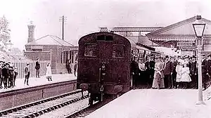 Somerton station opened to the public on 2 July 1906,[2] in a cutting adjoining the town centre. The station had two signal boxes and a goods shed, however none of these are still standing. The station stopped handling passenger services on 10 September 1962[3] but continued to serve freight traffic until closing altogether on 6 July 1964.[4] Despite all the stations between Castle Cary and Taunton being closed, the line remained open for trains from London Paddington station to stations such as Paignton, Plymouth and Penzance.