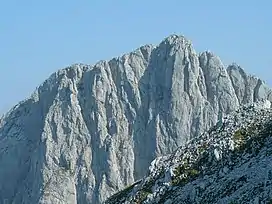 The Sonneck is a 2,260-metre-high (7,410 ft) mountain in the Kaisergebirge range of the Northern Limestone Alps in Austria. On its broad peak stands a solid summit cross, the panorama is comprehensive and there are particularly good views of the Ellmauer Halt, the highest mountain in the range, the Treffauer and Lake Hinterstein.