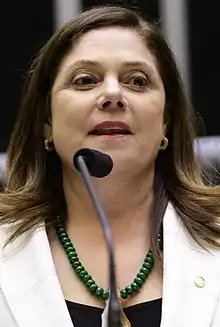 Santos voted in favor of the impeachment motion of then-president Dilma Rousseff.[2] Santos voted against a similar corruption investigation into Rousseff's successor Michel Temer.[3] She voted in favor of the 2017 Brazilian labor reforms.[4]