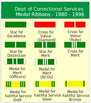 A new, and more comprehensive, series of decorations and medals was instituted in 1980. The SA Prisons Service was renamed Department of Correctional Services in 1990.