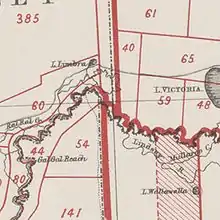 The border between Victoria, South Australia and New South Wales, as marked on an 1883 map showing Victoria's western border is further to the west than that of New South Wales.