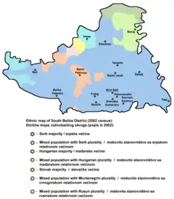 1. "South Bačka District (Serbia): Municipalities & Settlements - Population Statistics in Maps and Charts". Citypopulation.de. Retrieved 2016-09-25.