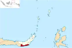 South Bolaang Mongondow Regency is a regency of North Sulawesi Province of Indonesia. The Regency stretches along the south coast of the province as part of the Minahasa Peninsula, facing the Gulf of Tomini. It was created on 24 June 2008 by splitting off districts which were previously part of Bolaang Mongondow Regency. It covers a land area of 1,932.30 km2, and had a population of 57,001 at the 2010 Census,[2] which rose to 69,791 at the 2020 Census;[3] the official estimate as at mid 2022 was 72,550.[1] The principal town lies at Molibagu.