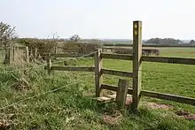 The South Cheshire Way is a 34-mile (55 km) long-distance footpath running east–west mainly through Cheshire, England, although parts lie in Shropshire and Staffordshire. The western section from Grindley Brook, near Whitchurch, runs through farmland; the eastern section from Mow Cop, near Biddulph, runs through low hills. The footpath is waymarked with black-and-yellow discs inscribed 'SCW'. It is covered by the Ordnance Survey Explorer series 257 and 268 maps, which denote it with a green lozenge.[1][2][3]