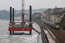 A mobile platform used during the rebuilding of the sea wall in 2014-2015