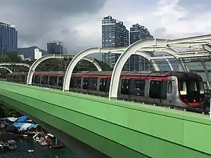 The South Island line (Chinese: 南港島綫), identified by light green on the MTR route map, is a rapid transit line of Hong Kong's MTR metro system. This line connects the HK business district from Admiralty station to the Southern District of Hong Kong Island and the island of Ap Lei Chau, which was not served by any rail transport prior to the opening of this line.[2] The rolling stock of South Island line is purpose-built for driverless operation. Trains are remotely controlled from the Operations Control Centre in Tsing Yi. Approved by the Executive Council in 2007,[3] the line commenced service on 28 December 2016.[4]