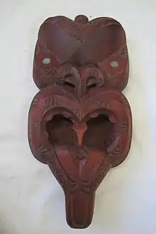 A Maori meeting house god with Paua shell eyes, donated to the museum by Col Gibson