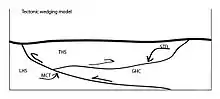 The main problem that the South Tibetan detachment is expected to help resolve is the method of emplacement of the GHC between the LHS and THS within the Himalaya.[5] There are three models that help explain this emplacement: wedge extrusion, channel flow, and tectonic wedging. The wedge extrusion and channel flow models work under the assumption that the STD is a low angle normal fault, while the tectonic wedge model works as if the STD is a thrust fault.[5]