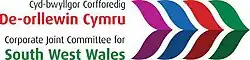 The South West Wales Corporate Joint Committee (Welsh: Cyd-bwyllgor Corfforedig y De-orllewin Cymru) is the Corporate Joint Committee for South West Wales that was established in April 2021 by statutory instruments made under the Local Government and Elections (Wales) Act 2021.[3] It is an indirectly elected body made up of leaders of principal councils and national park authorities in the region.[4]