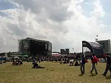 The name Southside refers to Southern Germany where the festival takes place. Festival organizers are FKP Scorpio and KOKO & DTK Entertainment. The festival site consists of 800,000 square meters of former military and airport precincts and features four stages. The festival first took place on the former military airport of Neubiberg (Munich) with approximately 15,000 visitors. In 2002, the number of visitors had risen to 30,000 and kept rising up to 60,000. The revenue for one festival weekend, according to the organizers, amounts to between five and ten million euros.[2] The paramedic service is provided by the Malteser Hilfsdienst, the Johanniter-Unfall-Hilfe (regional association Bodensee-Oberschwaben[3]) and the German Red Cross.[4] Throughout the entire weekend, around 400 helpers do approximately 12,000 hours of work.[5] Crowd surfing is strictly against the festival's safety policy.