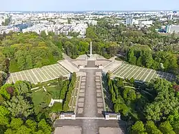 The Soviet Military Cemetery (Polish: Cmentarz Mauzoleum Żołnierzy Radzieckich) in Warsaw, Poland, is the burial place of over 21,000 Soviet soldiers who died fighting against Nazi Germany. It is the largest Soviet war cemetery in Poland and contains one of the first major monuments to be built in Warsaw to those who fought in the Second World War.[2] It is an example of socialist realist architecture.