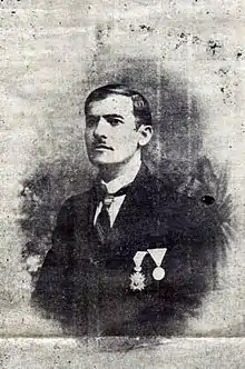 Spasoje Hadži Popović (Serbian Cyrillic: Спасоје Хаџи Поповић; 18 August 1882 – 3 July 1926) was a Serbian teacher in Bitola and editor of the newspaper Južne Zvezde (Southern Stars). He was born in Akritas, in Florina (now Greece). Growing up, he was a witness to the conflict between the Ecumenical Patriarchate of Constantinople and Bulgarian Exarchate, which divided the Slavic Christian people in Ottoman Macedonia.[1] He enrolled in the Serbian Gymnasium in Bitola in 1899[1] and subsequently in the teacher school in Aleksinac, which had been moved there from Belgrade, together with many pupils from Ottoman territory.[2] He was a member of the Saint Sava Society.[1] Popović was murdered by VMRO agents, who conducted a range of assassinations and terrorist acts against Serbs at that time.[3]