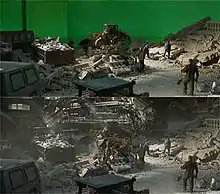 Trixter used a LIDAR scan of Grand Central Terminal from The Avengers to help create their CGI version (bottom), adding to the elements filmed on set (top).[187]
