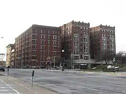 Spink Arms Hotel, also known as the Lionel Artis Center, is a historic hotel building located at Indianapolis, Indiana. It was built in 1919, and consists of two eight-story, brick towers linked by a one-story connector. It is in the Tudor Revival style and features twin four-story oriel windows on each tower and a crenellated parapet. Behind the building is a four-story parking garage constructed in 1922.[2]: 5