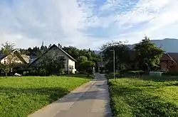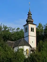 Saint John the Baptist Church stands on a hill right by the village. In the 15th and 16th centuries during the period of Turkish raids it was a defence post, protected by defensive walls. Legends say that the church bells would start ringing of their own accord when the enemy would approach and scare them away. In remembrance of these raids the bells are still rung every day at eleven o'clock. The church is decorated with frescos from around 1460.[6] The frescos on the portico painted by Jernej of Loka are largely lost, but the remaining frescos were recently restored and conserved.[7]