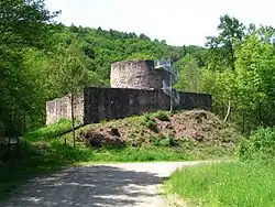 The Sprengelburg (or Springeburg) is a ruined hill castle in the county of Kusel in Rhineland-Palatinate. It lies between the villages of Eßweiler and Oberweiler im Tal on the L 372 state road. In 1983 the ruins were declared a heritage monument.
