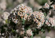 Spyridium parvifolium, commonly known dusty miller,[2] is a flowering plant in the family Rhamnaceae. It has dark green leaves and clusters of small, whitish flowers at the end of branches. It is widespread in eastern states of Australia.