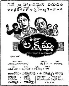 Sri Lakshmamma Katha (transl. The Story of Sri Lakshmamma) is a 1950 Telugu-language film, produced and directed by Ghantasala Balaramayya under the Pratibha Productions banner.[2] It stars Akkineni Nageswara Rao and Anjali Devi, with music composed by C. R. Subburaman.[3][4]