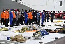 Recovered debris displayed in front of rescue personnel as BASARNAS gave daily updates on the search and rescue operation